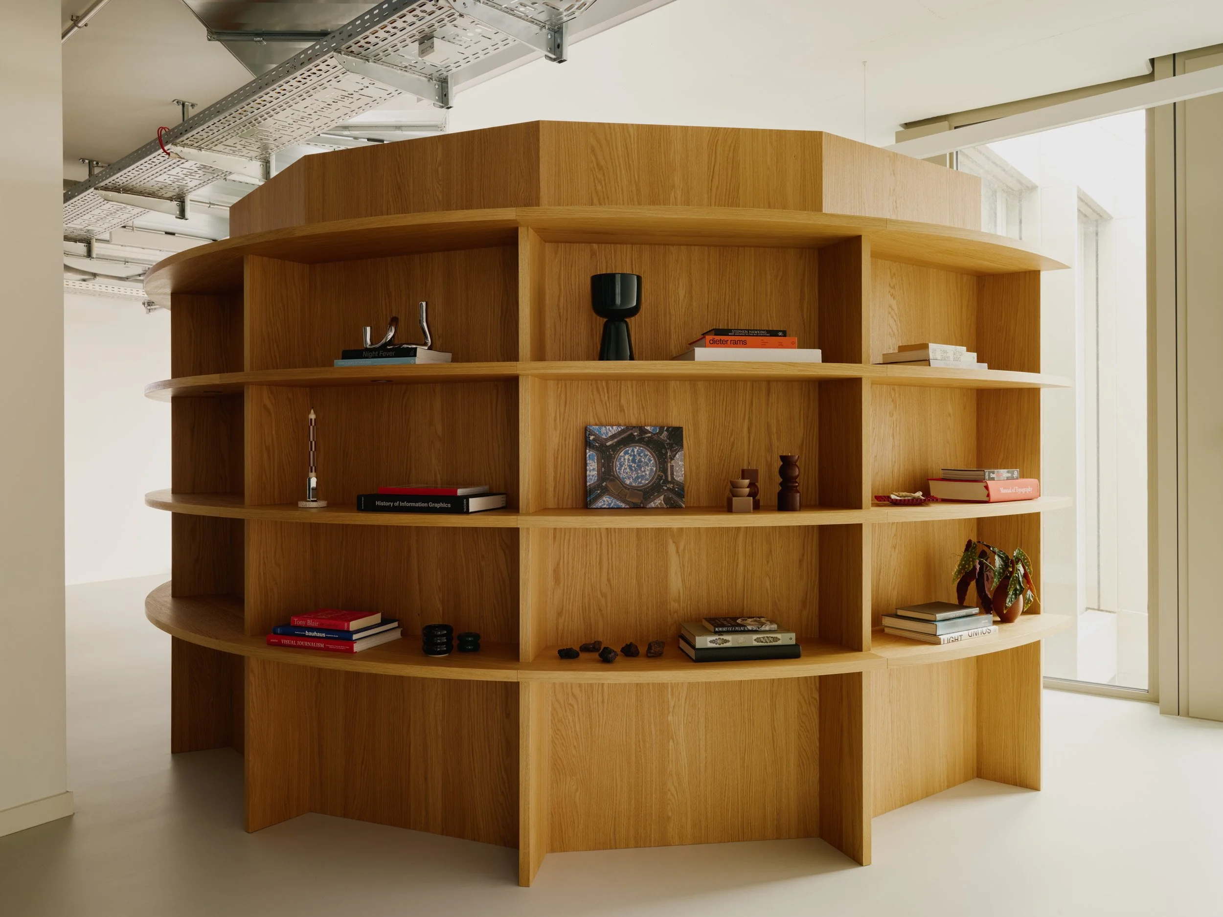 Für Moonfare GmbH entwickelte studio karhard einen Büroausbau, der Eiche als zentrales Material einsetzt und durch runde Elemente eine besondere räumliche Qualität schafft.